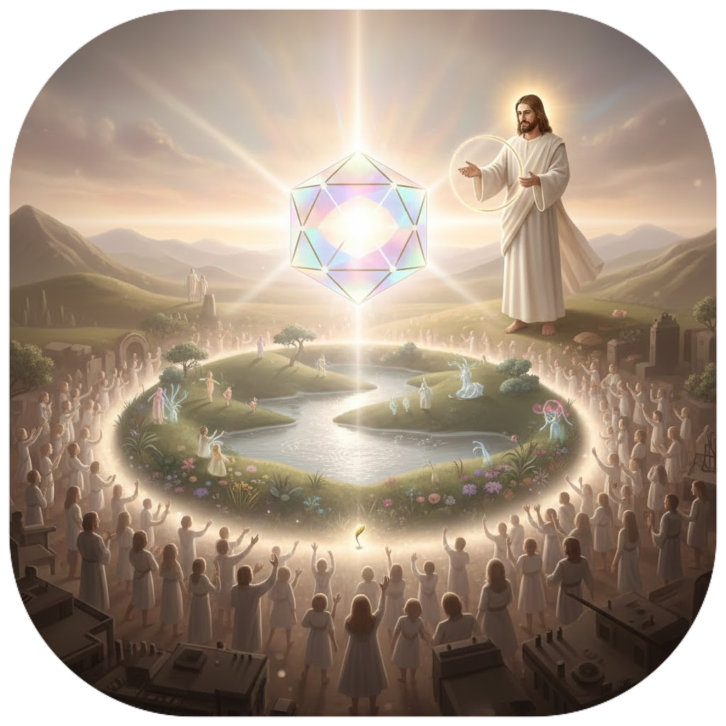 - Ablegen des menschlichen Egos: Die menschliche Konditionierung neigt dazu, sich durch Auserwähltsein oder Besonderheit zu erhöhen ("Ich will das nicht, nur eine Nummer zu sein"). Jesus korrigiert dies, indem er lehrt, dass jeder geliebte Mensch/jedes geliebte Wesen einzigartig und besonders ist, ohne dass die Liebe gewichtet oder geteilt werden muss.
