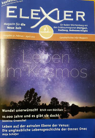 In der Print-Ausgabe Nr. 37 erschien dieser Fachartikel über UFO-Phänomene, für den Erich von Däniken und ich gemeinsam befragt wurden. Mein Beitrag findet sich auf Seite 8, direkt nach seinem Artikel. Dies belegt meine fachliche Expertise in der Grenzwissenschaft, die hier in gedruckter Form als Belegexemplar vorliegt.