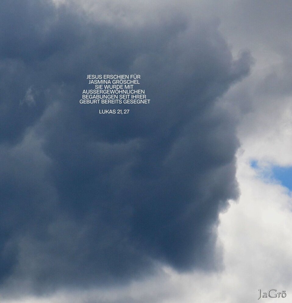 Lukas 21, 27: Und alsdann werden sie sehen den Menschensohn kommen in einer Wolke mit großer Kraft und Herrlichkeit.