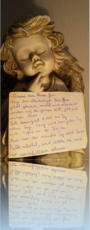 Bete dieses Gebet 6 mal am Tag neun Tage lang und lasse jeden Tag eine Kopie in der Kirche.